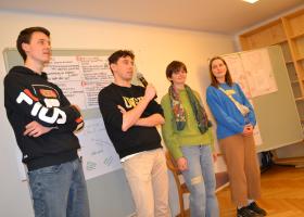 Eine Gruppe ehrenamtlicher MitarbeiterInnen aus verschiedenen Alters- und Berufsgruppen, engagiert sich beim sogenannten IMS - Integration macht Schule.